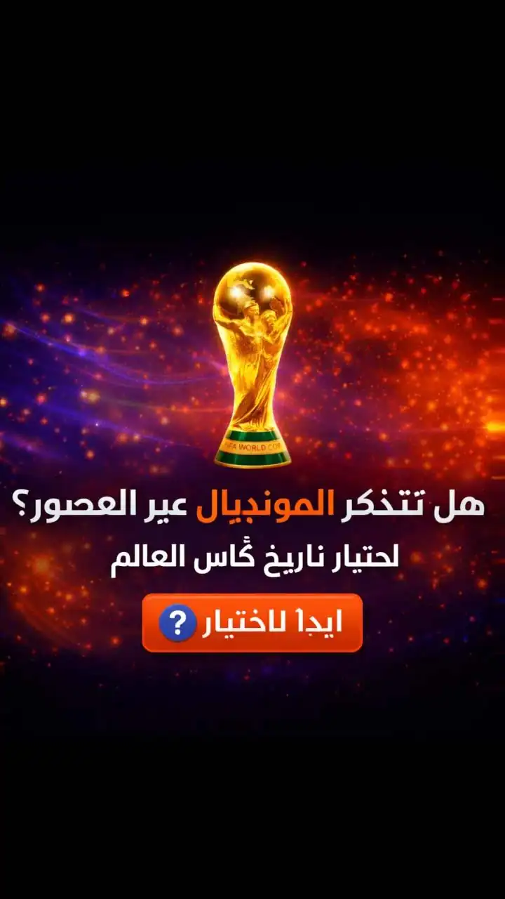هذا الاختبار يختبر قدرتك على تذكر المنتخبات المتوجة، الدول المستضيفة، وأسماء صنعت التاريخ.